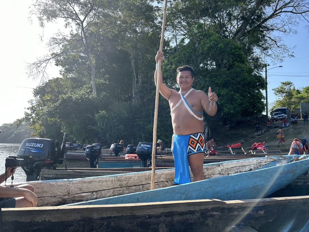 Us doughy gringos wobbled aboard and sat on our bench seat. The canoes shoved off and headed downstream for about 10 minutes before arriving at Embera native village and gift shop.