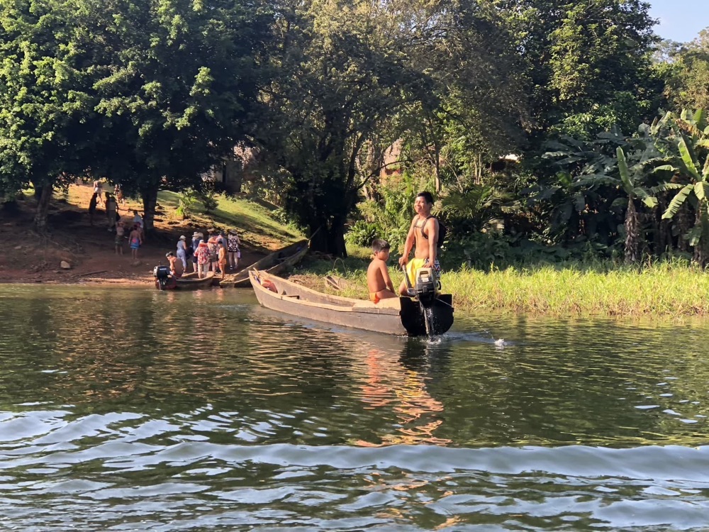 After an hour or so we parked near a river and boarded our motor powered dug out canoes.