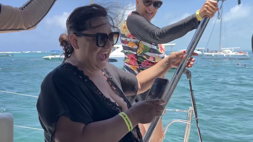 The choppy water also made difficult to swim, look and listen to our guide who was pointing out various fish with glee. I felt like a toddler splashing around the shallow end of the pool with a foam pool noodle under my arms. There were other tour groups in the water so you had to make sure that you were with the right group of heads bobbing in the ocean.The hardest part for me was then ascending the ladder back on the boat with my foot still tender from surgery and having to use my knee to crawl aboard.