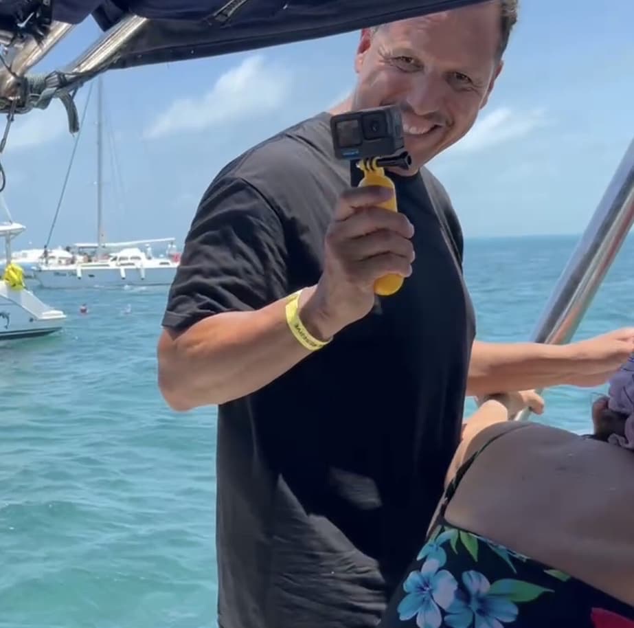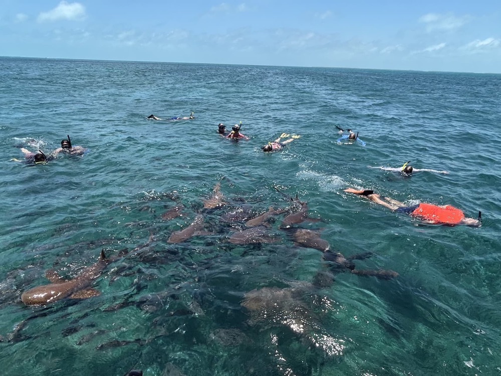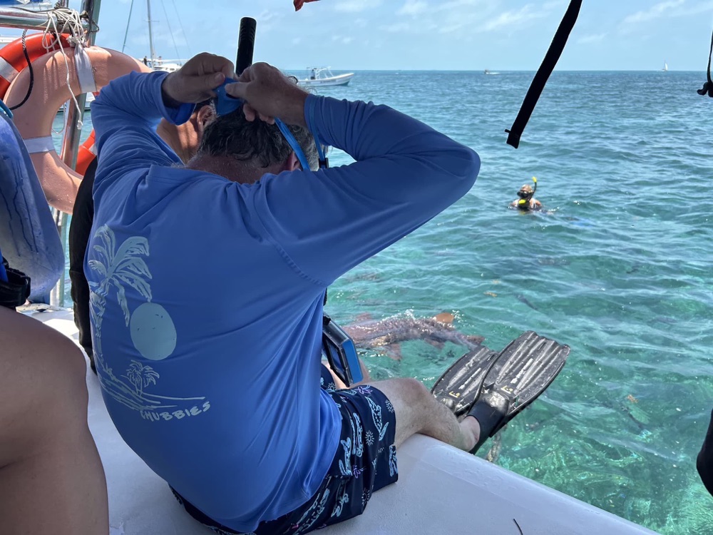 The catamaran cruised over to another area of the reef to swim with the sharks. Nurse sharks are more akin to a giant koi fish or even a big dumb wet puppy dog with a fin on its back.They said that they can’t bite you but quickly added to give them plenty of space and don’t try to pet them.