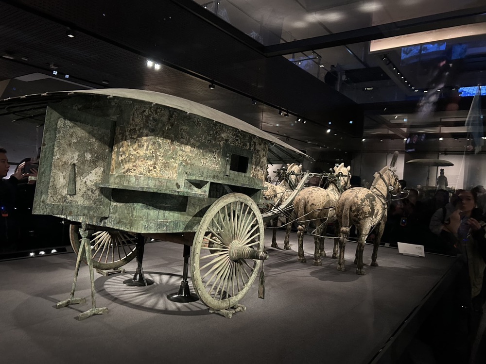After being politely scrutinized, we boarded some electric tram cars to whisk us up the hill to the museum, which contained some of the more amazing and intact artifacts from the archaeological site. Similar to ancient Egyptian pharaohs, the emperor Qin Shi Huang wanted to have it all for the afterlife and he wanted his own army.
