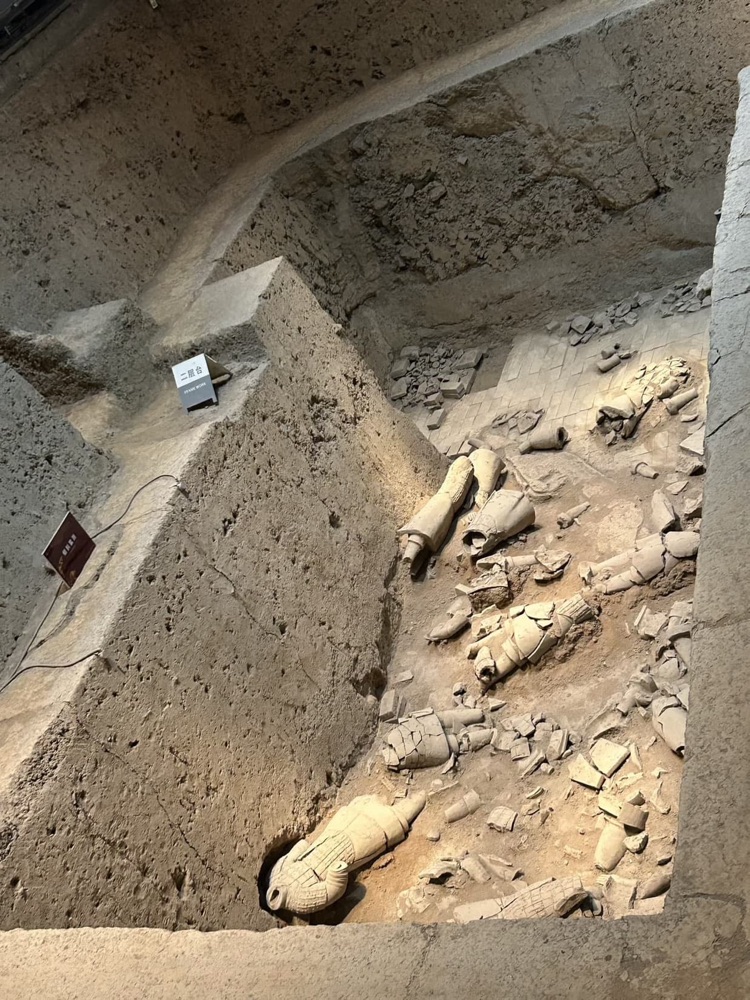 So, what happened, why are they all busted up? Well, after the Emperor was long gone, the resistance looted the warriors and took all of their weapons that they had been buried with to then fight against the current Emperor and smashed the warriors. Very few warriors were found intact; one is an archer kneeling with his empty hands posed for a missing bow and arrow.